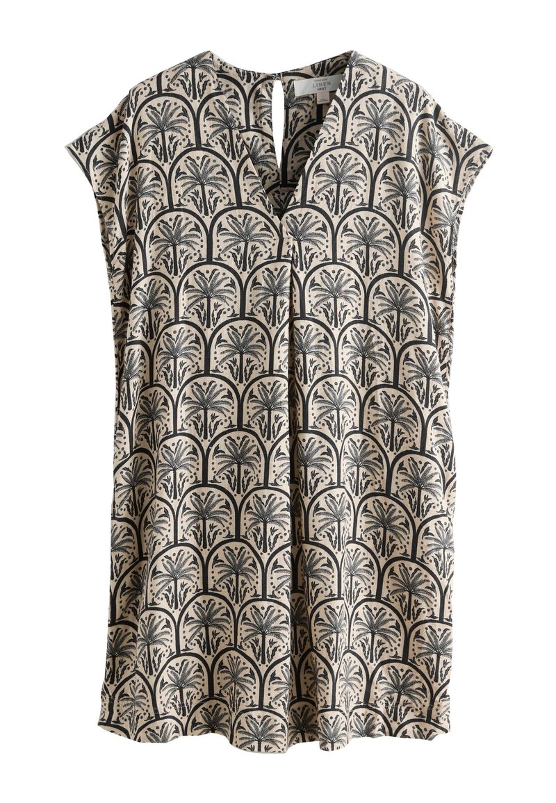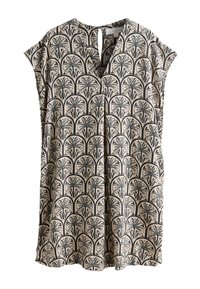 REGULAR FIT-SHORT SLEEVE V-NECK KAFTAN MINI - Robe de jour - black white palm print