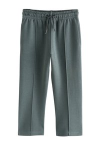 Pantalon à cordon de serrage vert foncé avec taille élastique et plis avant, longueur raccourcie, et poches latérales, présenté sur fond blanc.