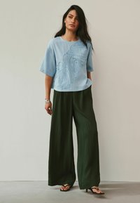 REGULAR FIT - TEXTURED SWIRL DETAIL SHORT SLEEVE TOP . - Blouse - dusty blue
