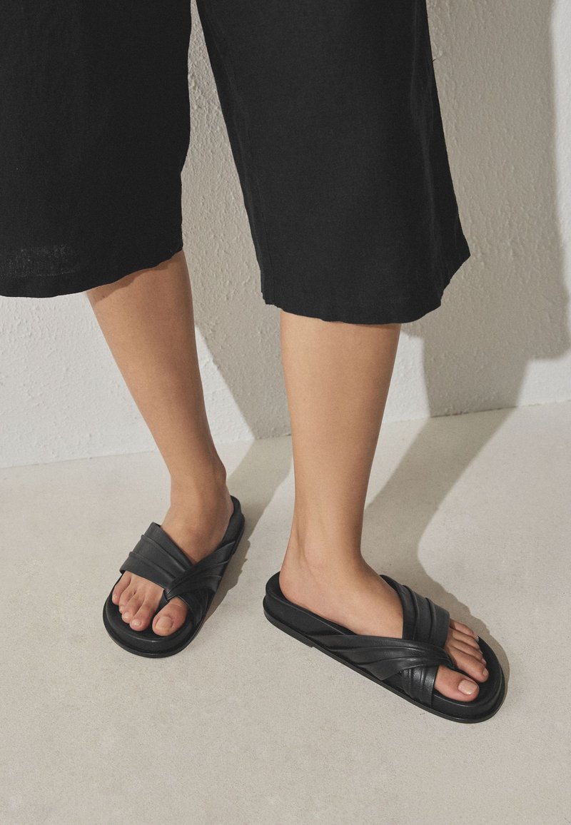 REGULAR FIT - TOE THONG - Sandales tongs - black leather