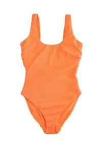 Maillot de bain une pièce à rayures diagonales bleu marine et blanches, fabriqué dans un tissu lisse avec un décolleté plongeant et des bretelles larges.