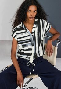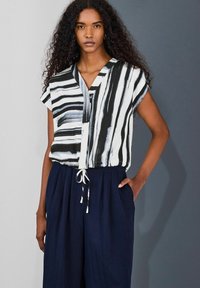 REGULAR FIT - V-NECK SHORT SLEEVED TIE WAIST - Blouse - navy/black/white