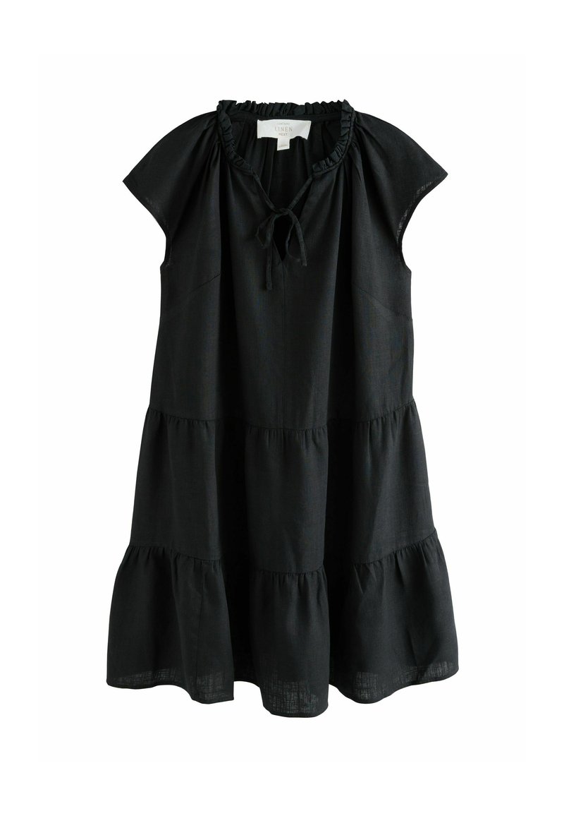 REGULAR FIT - V-NECK TIERED MINI DRESS WITH LINEN . - Robe de jour - black