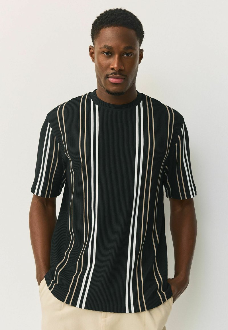 REGULAR FIT - VERTICAL STRIPE T-SHIRT - T-shirt imprimé - black and neutral