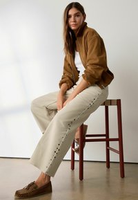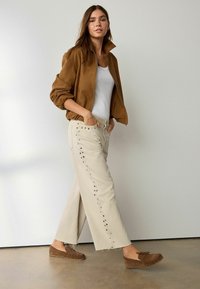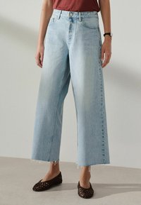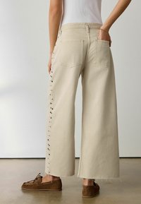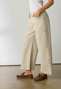 REGULAR FIT - WIDE LEG RAW HEM CROPPED JEANS . - Wide Leg - neutral stud