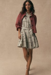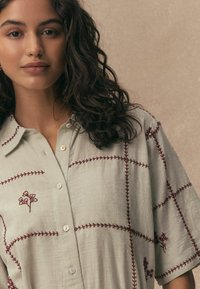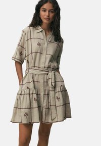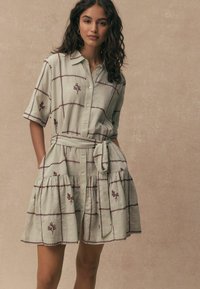 TALL FIT - SHORT SLEEVE TIE WAIST MINI - Robe chemise - blue with red embroidery