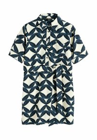 REGULAR FIT - MINI SHORT SLEEVE TIE WAIST - Robe chemise - navy blue geo printed