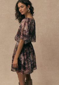 TALL FIT - KIMONO SLEEVE WAISTED MINI - Robe de jour - black pink floral printed