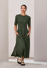 TALL FIT - SHORT SLEEVE SHIRRED BODY MIDI - Robe en jersey - khaki green
