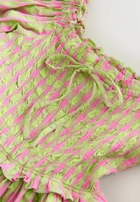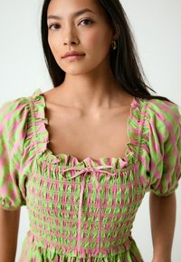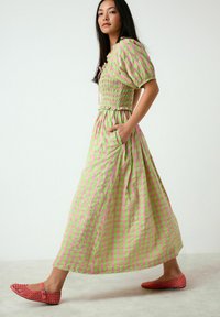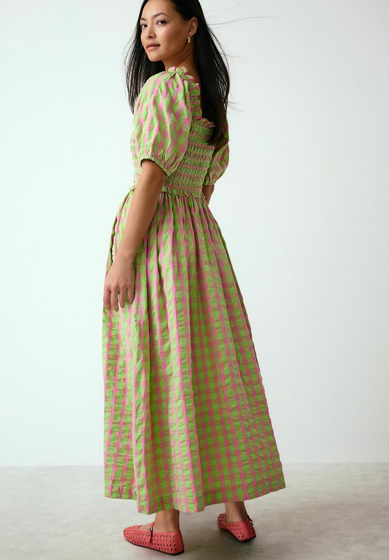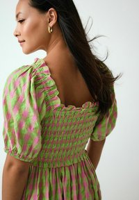 REGULAR FIT - PUFF SLEEVE SHIRRED MIDI DRESS . - Robe de jour - green/pink gingham