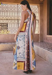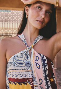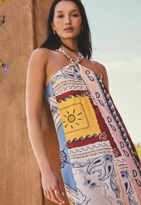 REGULAR FIT - HALTER TWIST NECK MIDI DRESS . - Robe longue - red scarf printed