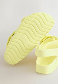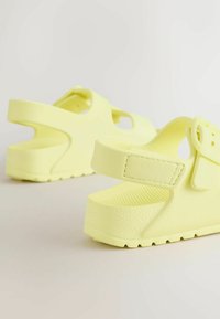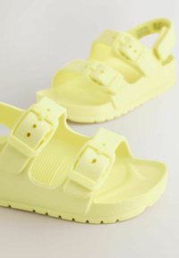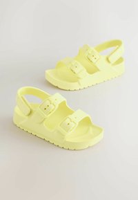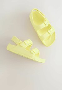 Sandale ouverte jaune clair avec deux brides réglables à boucle et une bride arrière, conçue pour un usage décontracté.
