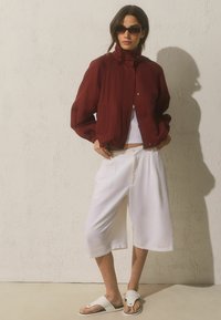 REGULAR FIT - TOE THONG FOOTBED SANDALS WITH HARDWARE . - Sandales tongs - white