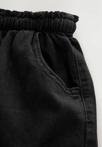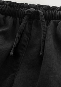 Shorts décontractés noirs avec taille élastique, cordon de serrage et poches latérales, présentés sur fond blanc.