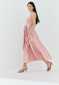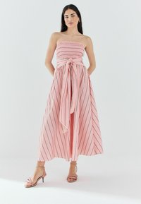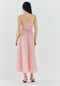 TALL FIT - BANDEAU SHIRRED BODY MIDI OCCASION DRESS . - Robe de jour - pink stripe