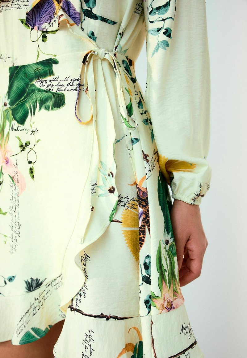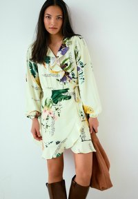 TALL FIT - LONG SLEEVE MINI WRAP - Robe de jour - kew collection yellow floral print