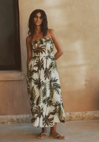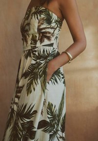 TALL FIT - RUCHED BANDEAU - Robe longue - khaki/cream palm printed