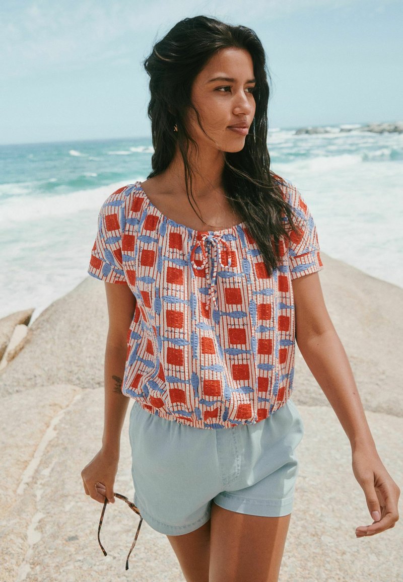 TALL FIT - SHORT SLEEVE BUBBLEHEM SCOOP NECK T-SHIRT . - Blouse - red blue fish print