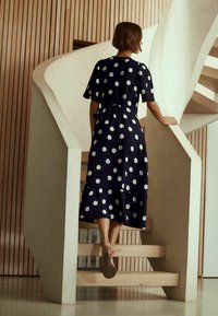 TALL FIT -WRAP MIDI - Robe de jour - navy white polka dot