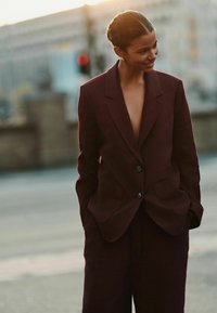 TIE WAIST WIDE LEG - Pantalon classique - wine