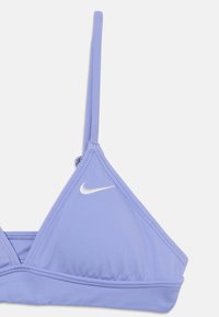 Ensemble bikini deux pièces lavande avec un haut triangle doté de fines bretelles réglables et d'un logo Nike blanc sur le côté gauche du haut.