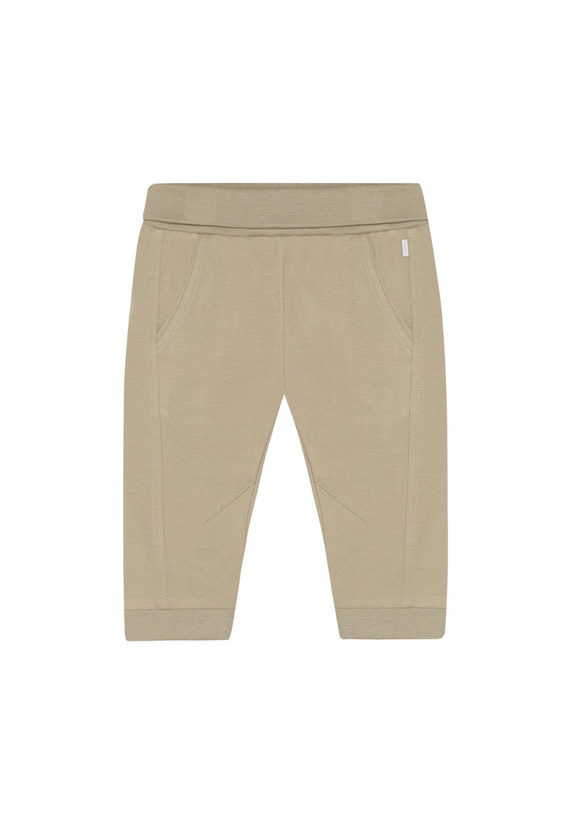 Pantalon de jogging beige en coton avec une taille élastique et des poches latérales. Présente des accents texturés aux genoux et des poignets côtelés aux chevilles.