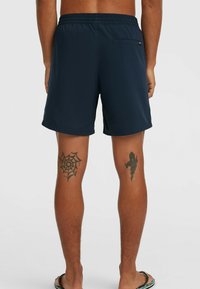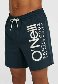 Jeune homme aux cheveux blonds bouclés portant un short de bain bleu marine O'Neill, debout devant un fond clair uni, face à l'avant.