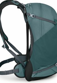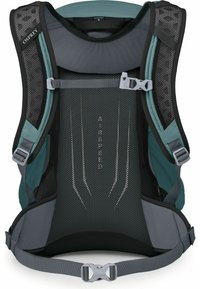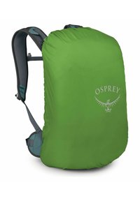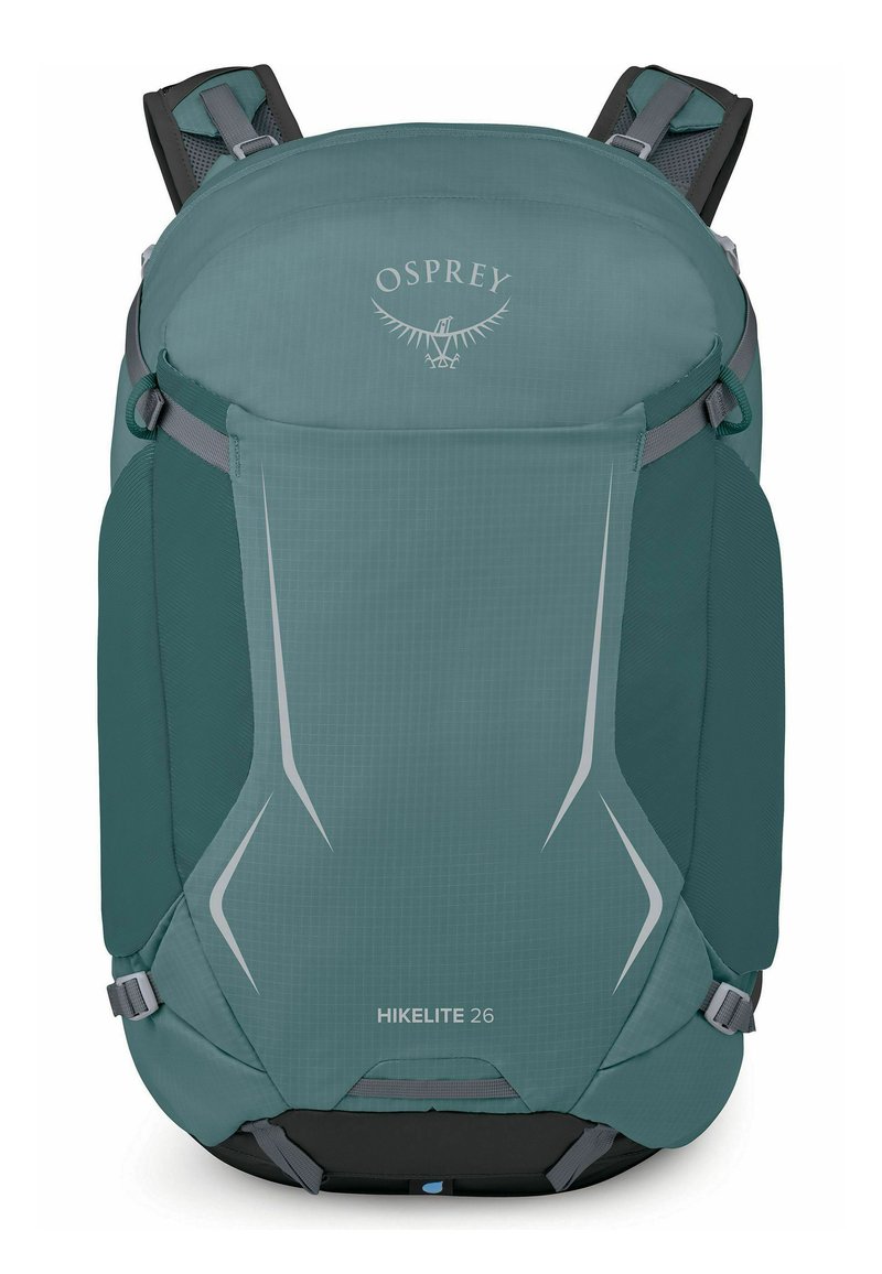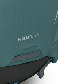 Sac à dos de randonnée Teal Osprey Hikelite 26 avec bretelles rembourrées, sangles de compression latérales et accents de design réfléchissants sur le panneau avant.
