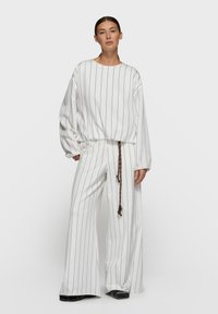 WIDE JOGGER PINSTRIPE - Pantalon classique - ecru