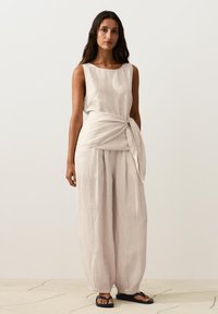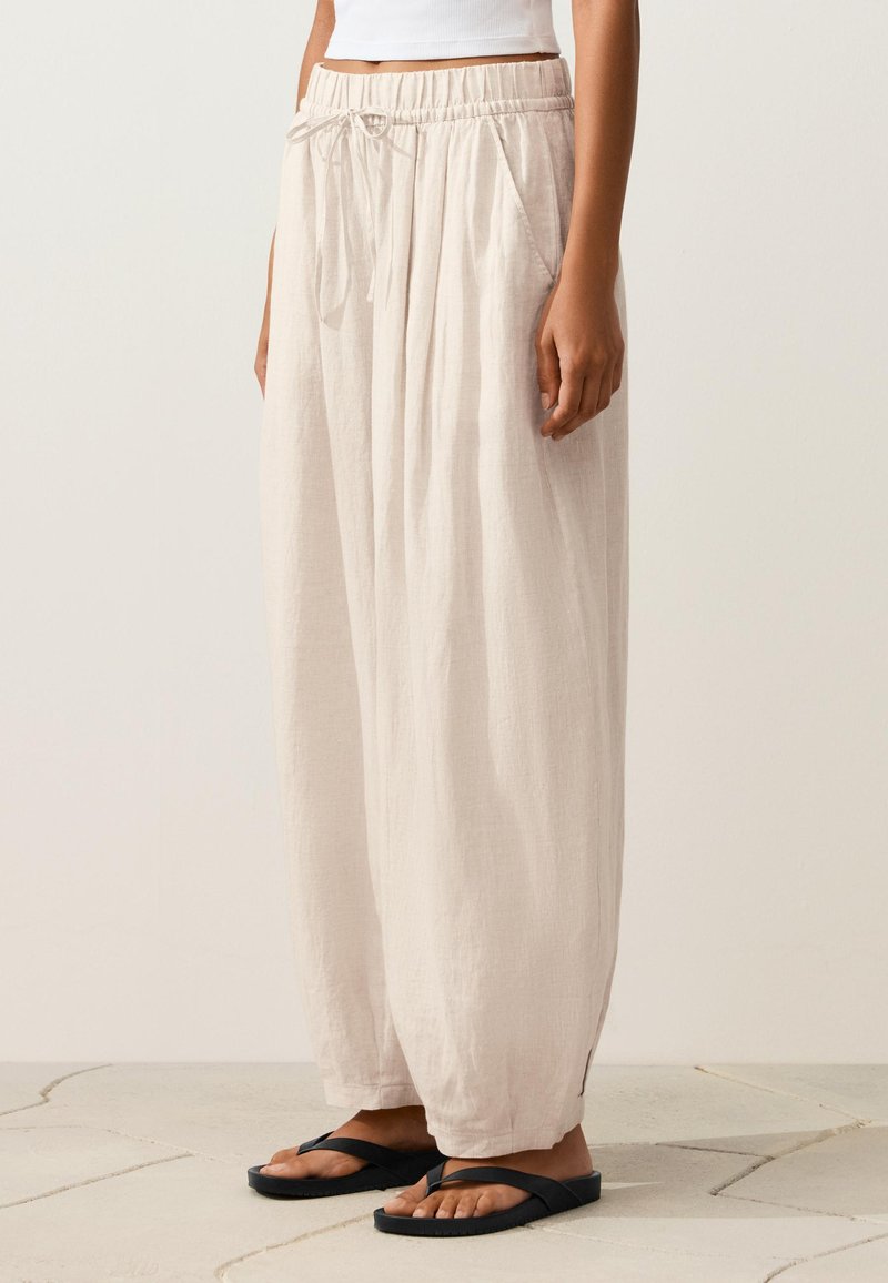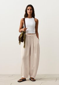 LINEN BALLOON TROUSERS - Pantalon classique - stone