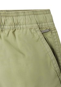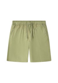 Shorts décontractés vert clair avec taille élastiquée, cordon de serrage et poches latérales, posés à plat sur fond blanc.
