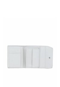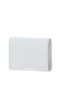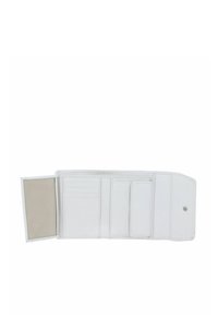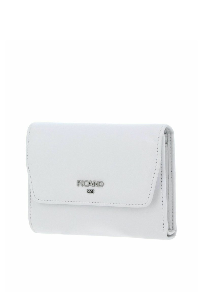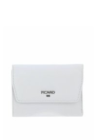 Portefeuille en cuir blanc avec fermeture à rabat et logo argenté de la marque Picard centré sur le devant.