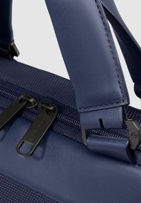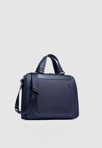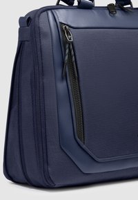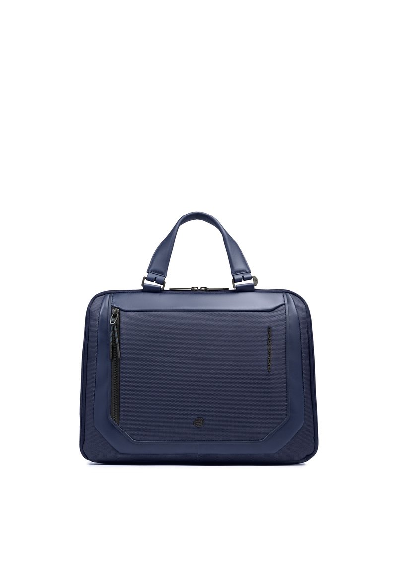 Porte-documents bleu marine avec deux poignées supérieures, poche zippée à l'avant et panneau texturé, conçu pour un usage professionnel.