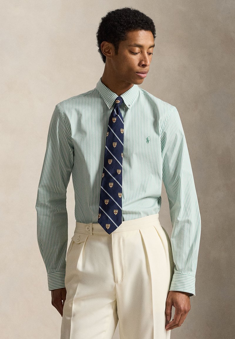 SLIM FIT STRIPED STRETCH POPLIN SHIRT - Chemise - essex green/white
