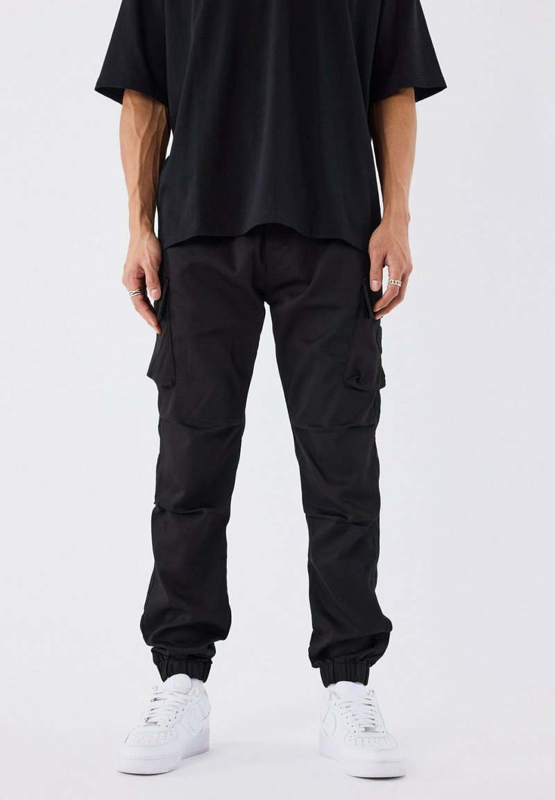 À DÉTAILS MONOGRAMME - Pantalon cargo - noir