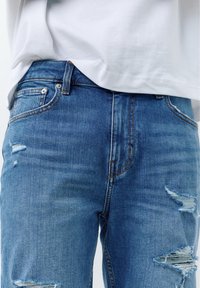 SLIM-FIT RIPS BERMUDA SHORTS - Short en jean - blue denim