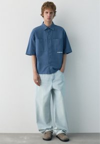PULL&BEARSTRIPED SHORT SLEEVE - SHIRT - Chemise - blue