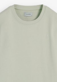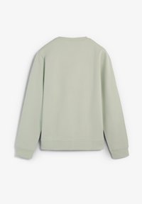 Sweat-shirt vert clair avec un col rond et des manches longues. Confectionné dans un tissu doux, il présente un ourlet et des poignets côtelés. Design simple, sans motifs.