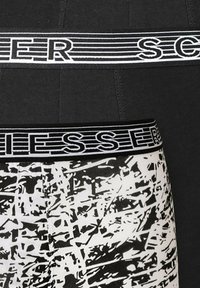 Pack de cinq boxers, présentant un motif graphique en noir et blanc, des options unies en noir et des ceintures élastiques noires avec logos blancs.