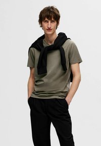 Selected V-AUSSCHNITT - T-shirt basique - khaki