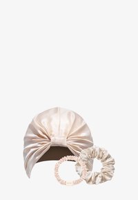 Veillez à ce que tous vos cheveux soient bien rentrés dans le turban de sorte que le bord élastique en soie recouvre entièrement vos racines ainsi que les pointes de vos oreilles. Réglez la bande ajustable pour un ajustement personnalisé et confortable. Si vous avez les cheveux longs ou épais, fixez-les avec un élastique à cheveux ou un chouchou SILKE avant de les rentrer dans le turban.