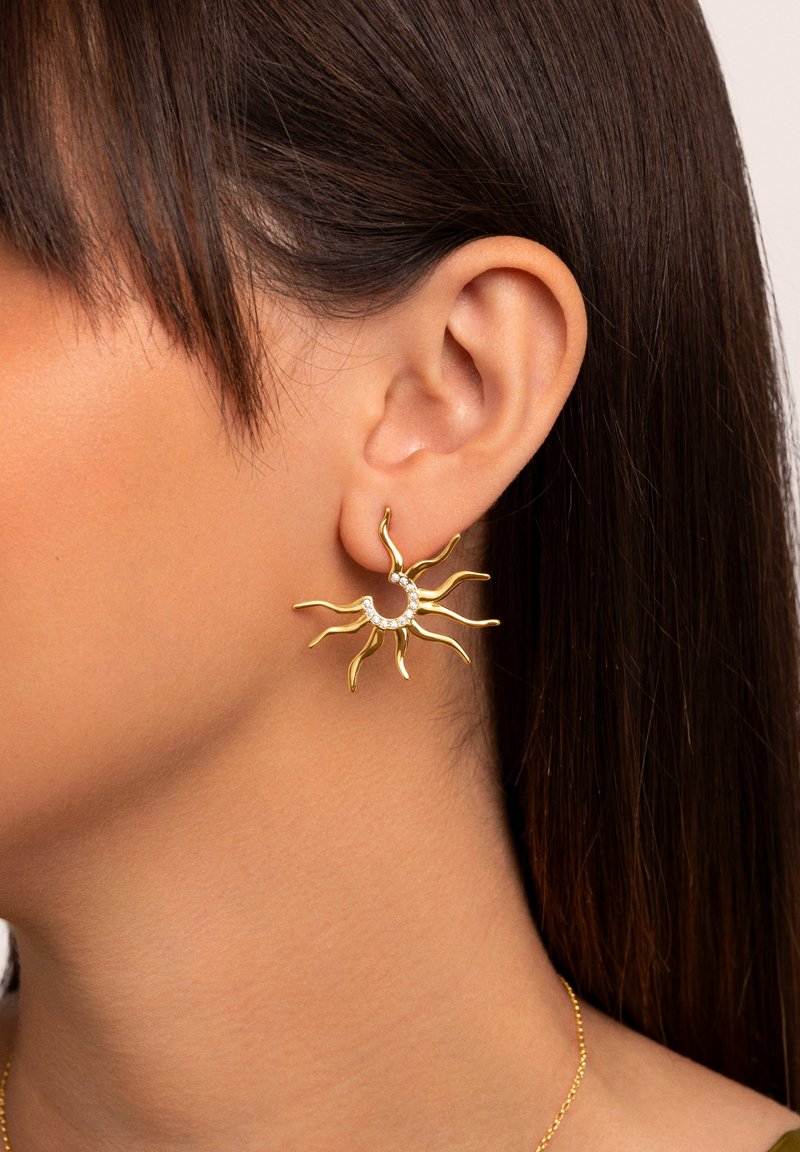 Les boucles d'oreilles Sole Mio sont rondes et en forme de soleil, parfaites au quotidien. De grandes boucles d'oreilles à tige en métal pour votre prochain événement ou fête.