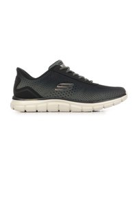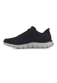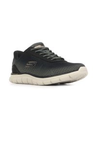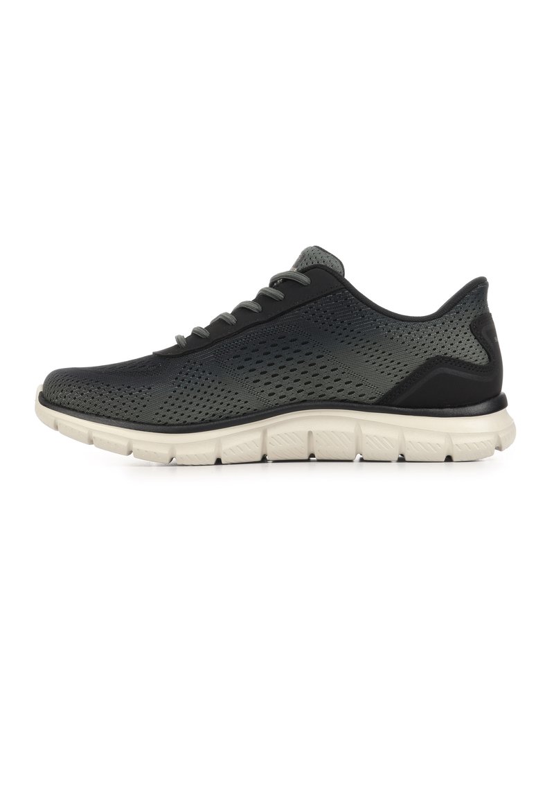 Baskets en mesh respirant noir et gris, avec semelle blanche segmentée et lacets noirs, vues de profil sur fond blanc.