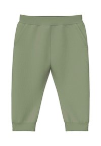 Pantalon de survêtement rose taille tout-petit avec taille élastique, poches latérales en biais et poignets côtelés aux chevilles.