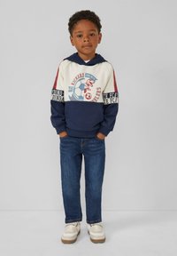 IN COLOUR-BLOCK-OPTIK MIT VIELEN PRINTDETAILS - Sweat à capuche - tiefblau