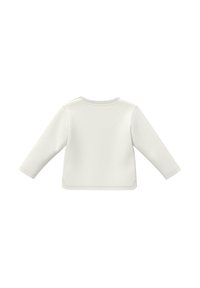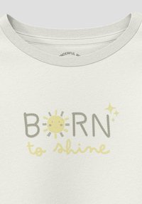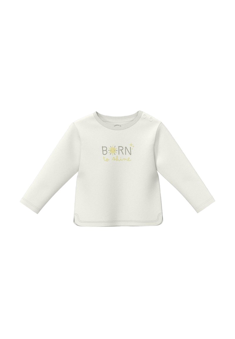 Chemise pour bébé à manches longues couleur crème avec boutons-pression à l'épaule et texte "Né pour briller" accompagné d'un graphique de soleil à l'avant.