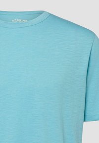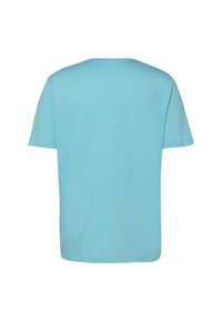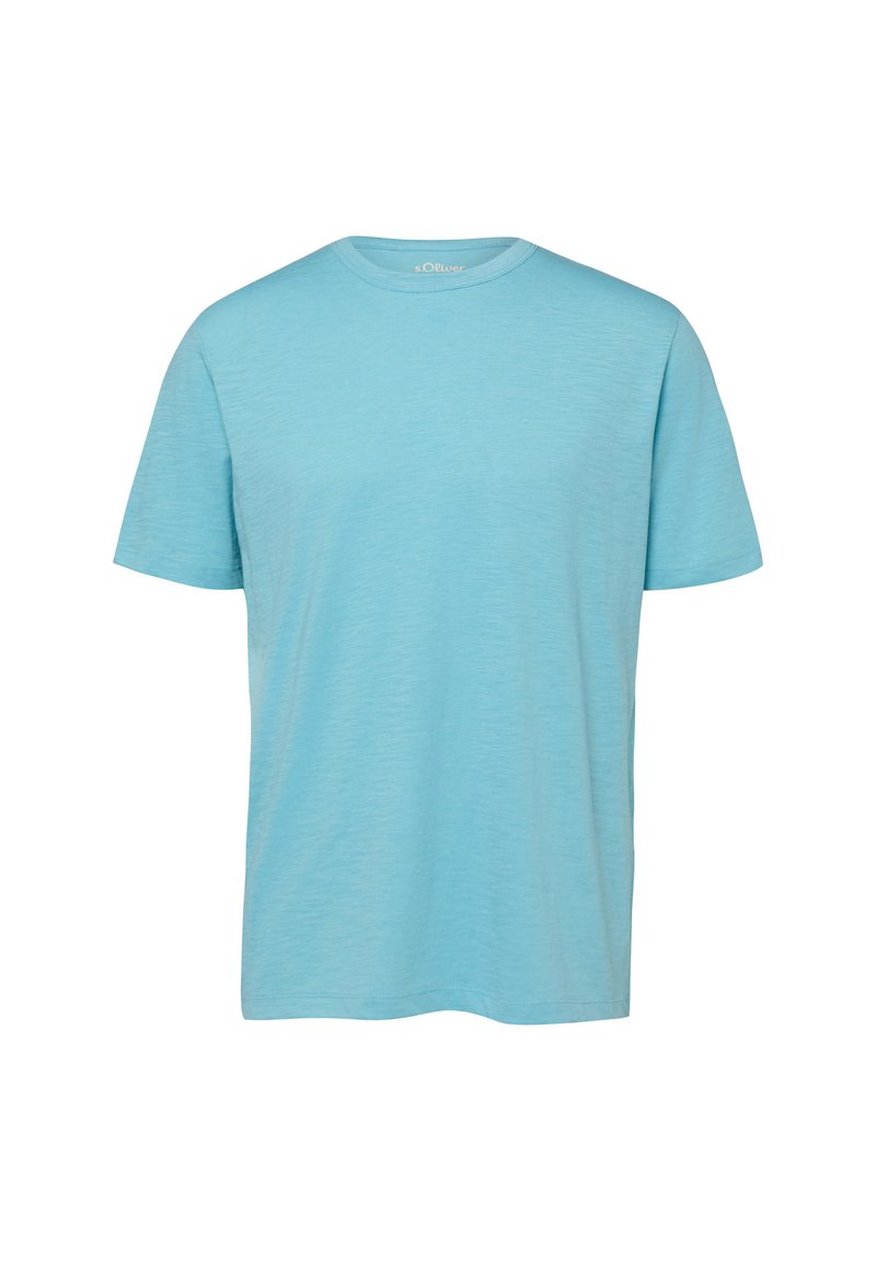 T-shirt bleu clair à manches courtes avec col rond, texture subtile et coupe régulière, présenté sur un fond blanc uni.