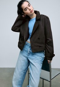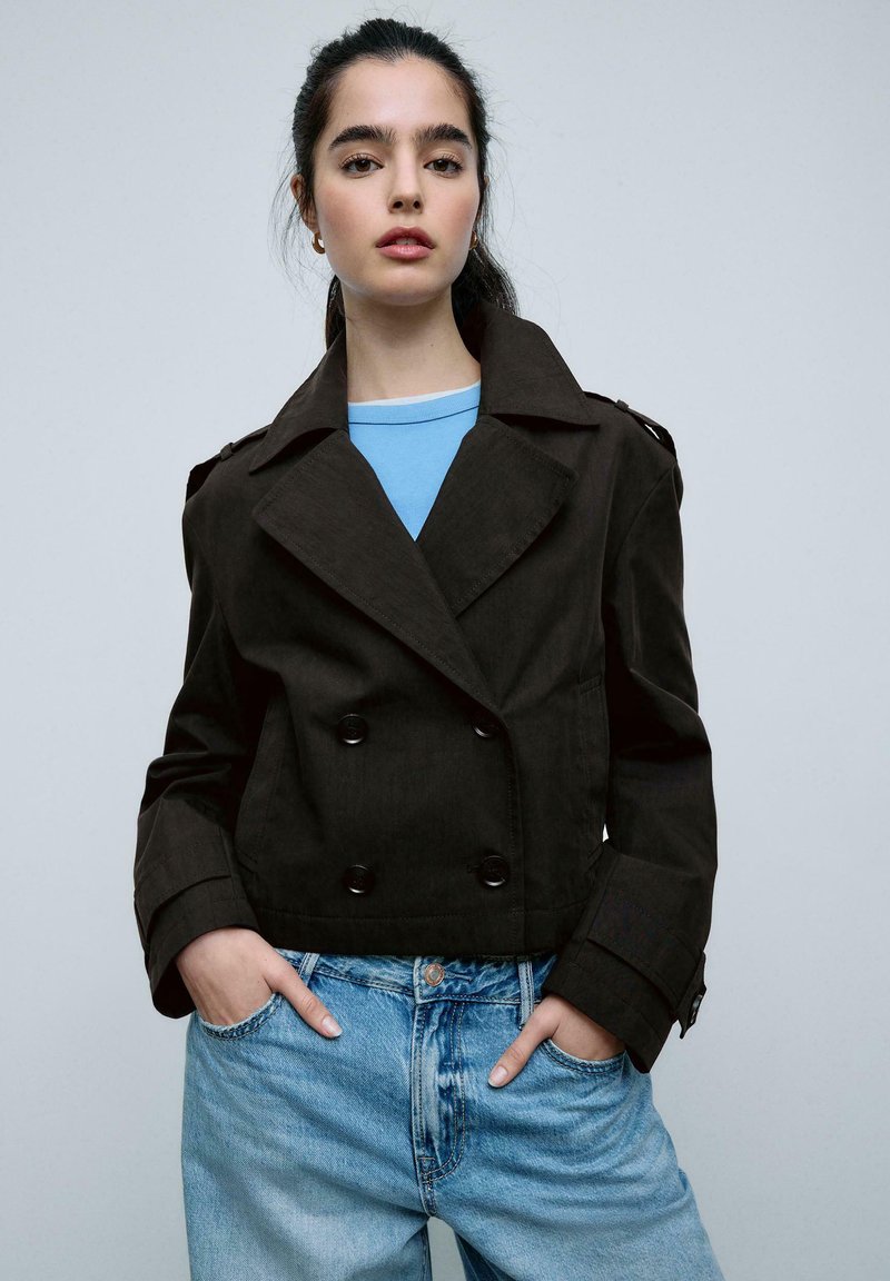SHORT DOUBLE-BREASTED TRENCH - Veste légère - black