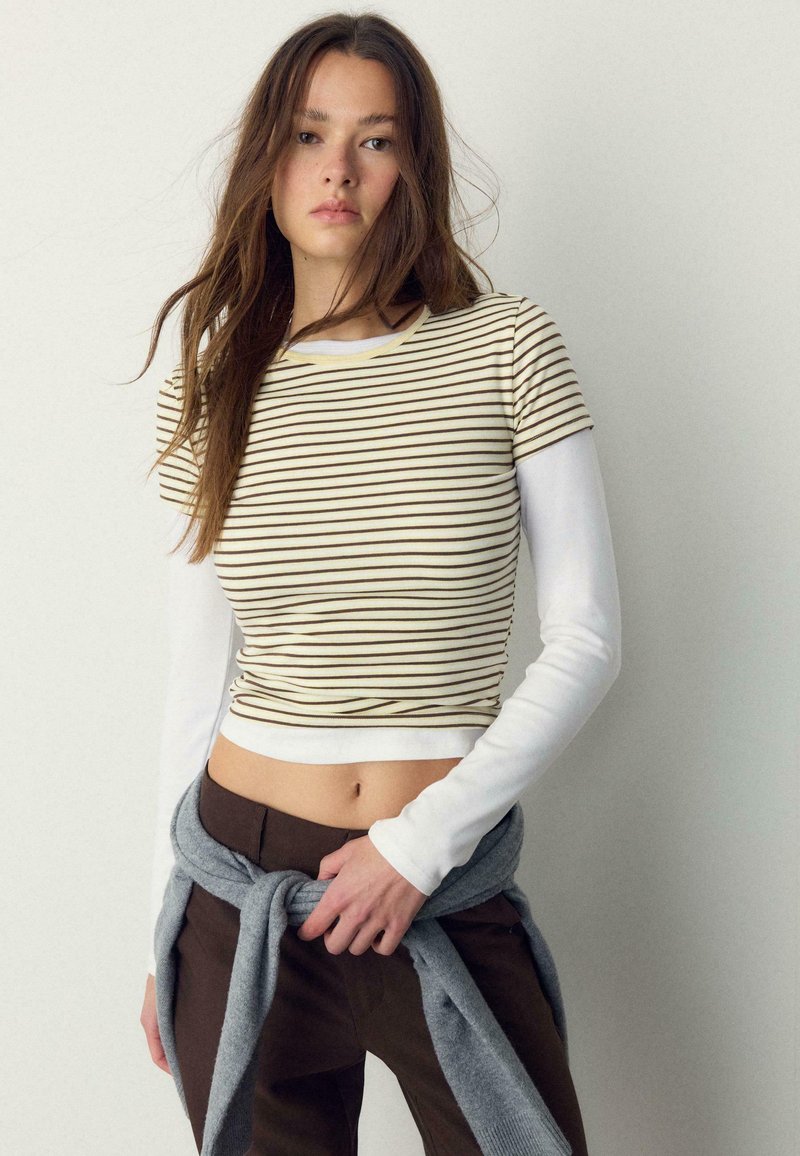 BASIC SLIM FIT STRIPED - T-shirt imprimé - light yellow