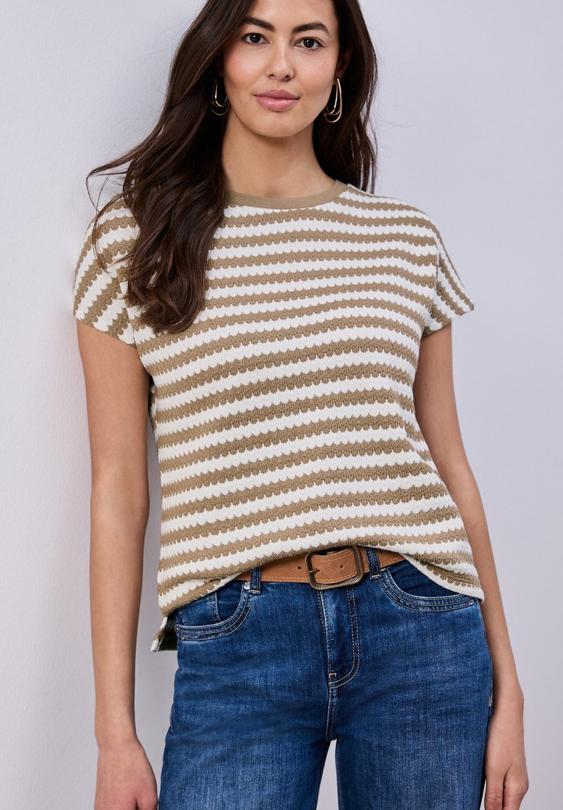 DROPPED SHOULDER SHIRT MIT STREIFEN - T-shirt imprimé - smoke beige
